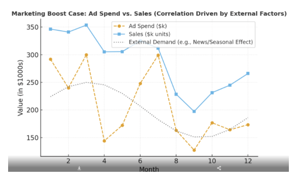 A famous cautionary tale in marketing is the case of a home security company that saw sales spike whenever they ran a new ad campaign. The marketing team confidently took credit, believing the advertising caused the revenue jump. External news events (like widely reported burglaries or riots) were driving customer fear and demand, not the ads themselves. The ads correlated with sales only because they happened to run when news-driven demand was peaking – they were merely a channel for customers to respond to the existing fear. If the company had doubled its ad budget thinking it found a causal growth lever, it might have been disappointed once the news cycle calmed. As one executive put it, “correlation is not causation!” after discovering the real driver was something else entirely.