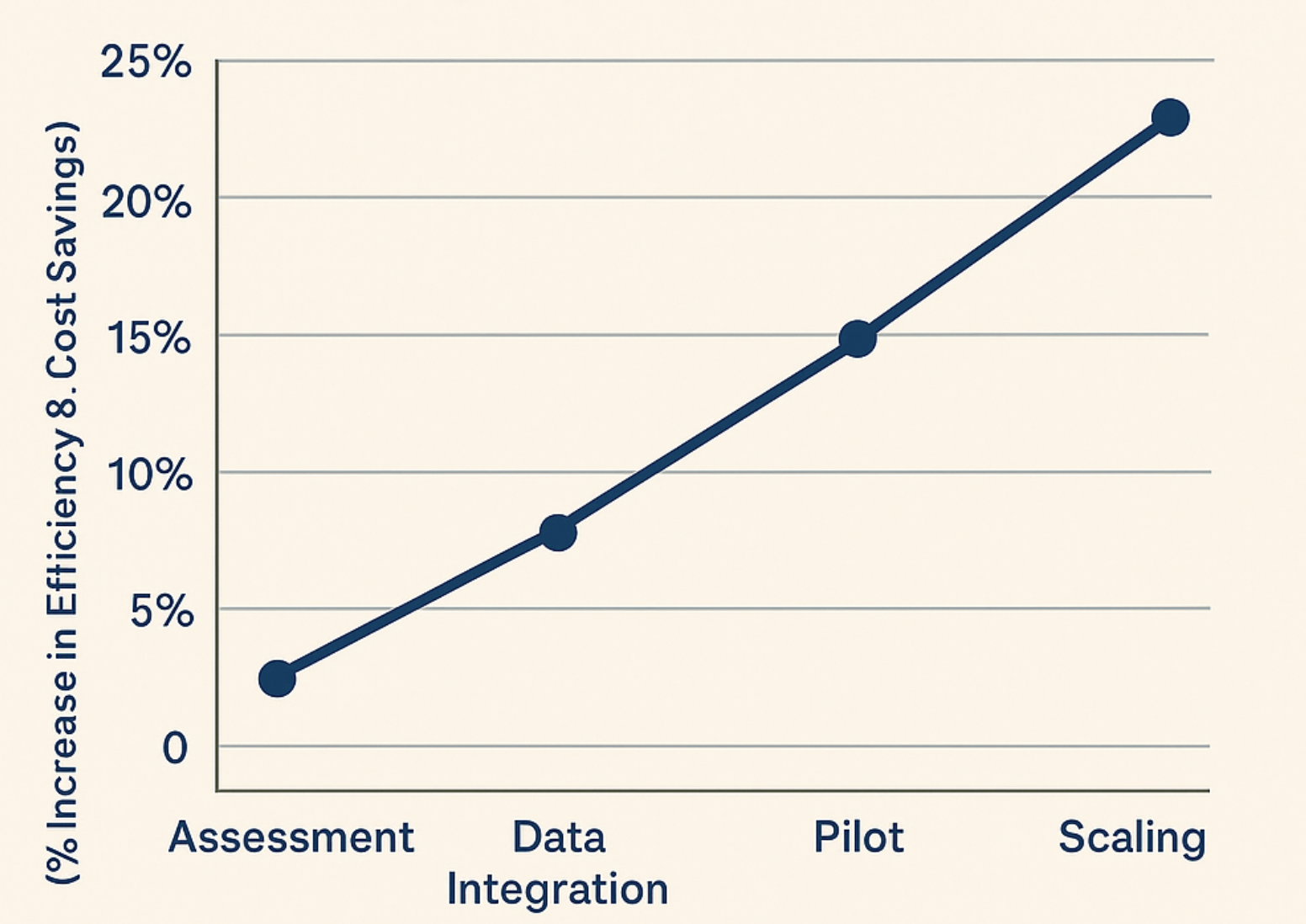 Y-axis: ROI (% Increase in Efficiency & Cost Savings)