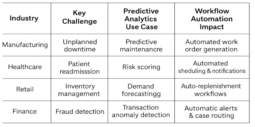 The combined effect is transformative: predictive analytics identifies what should happen next, and workflow automation ensures it happens efficiently.